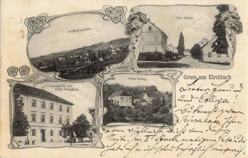 Kirchbach von Osten mit k.k. Bezirksgericht und Ortsstraße