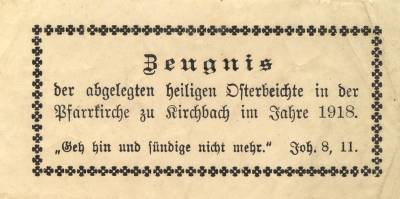 Beichtzeugnis aus dem Jahr 1918