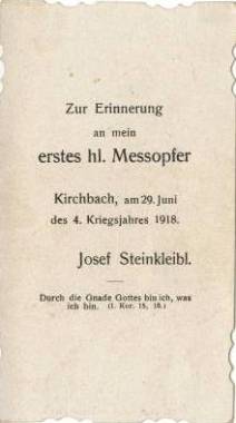 Anlässlich der Primiz des Herrn Josef Steinkleibl in Kirchbach