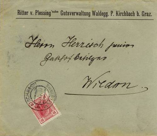 Brief vom Gut Waldegg mit Poststempel vom 26.4.1907